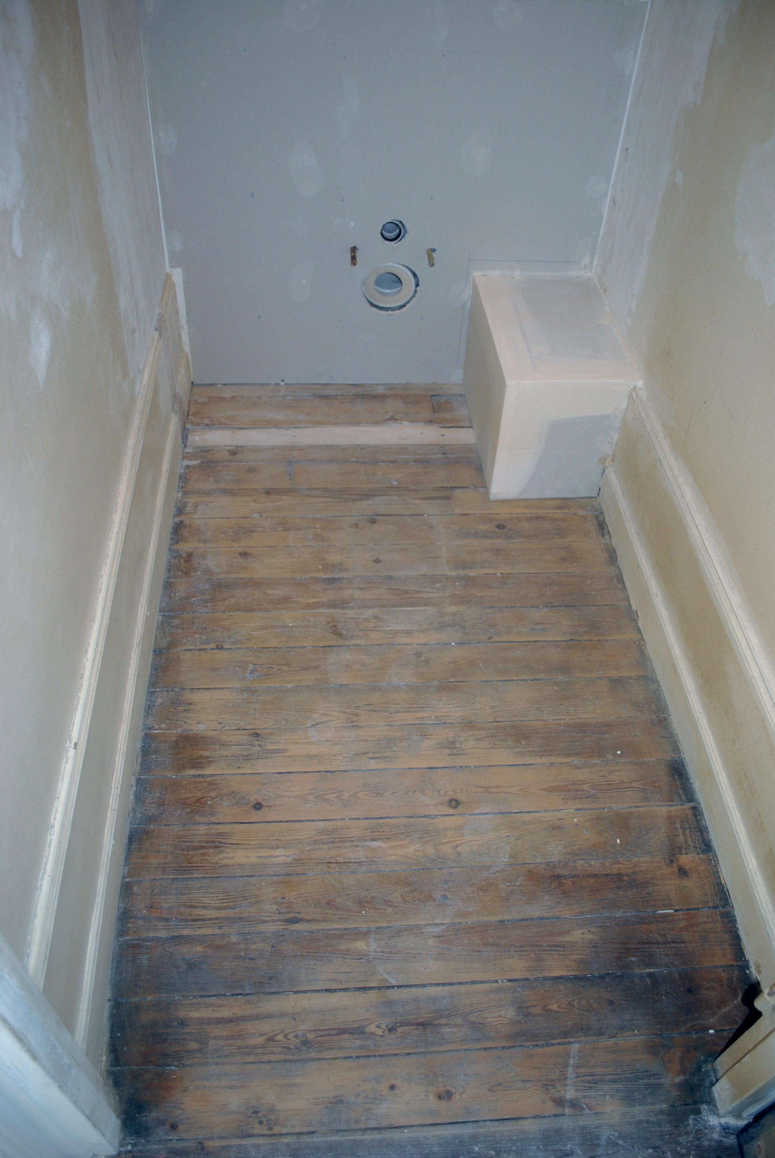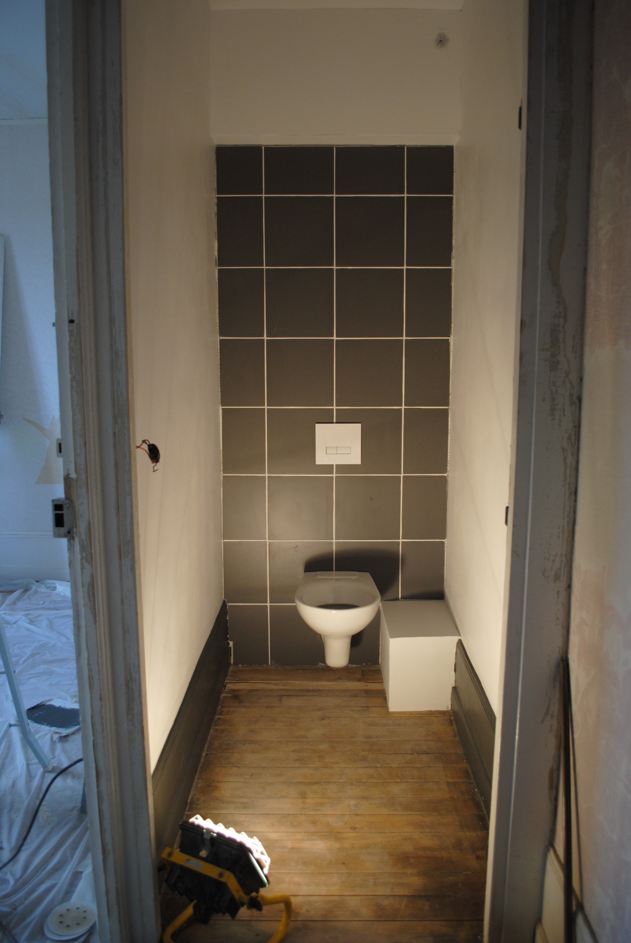Les toilettes / placard (car de l’autre côté du mur il y aura un placard qui donnera dans notre chambre) se sont transformées en couloir le temps de quelques heures.