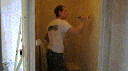 Je vous offre juste petite animation de l’homme en train d’encoller le mur.
