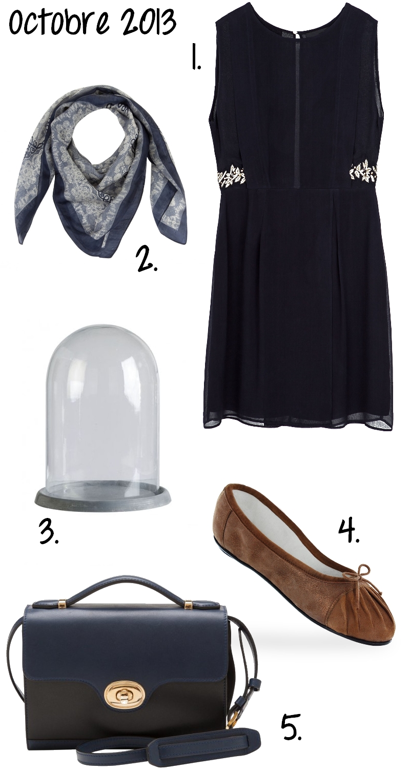 1. Robe Brodée by Zara 2. Foulard En Soie by Naf Naf 3. Cloche Empire by Jardin d’Ulysse 4. Ballerine Beauty by Repetto 5. Gibecière by Le Tanneur