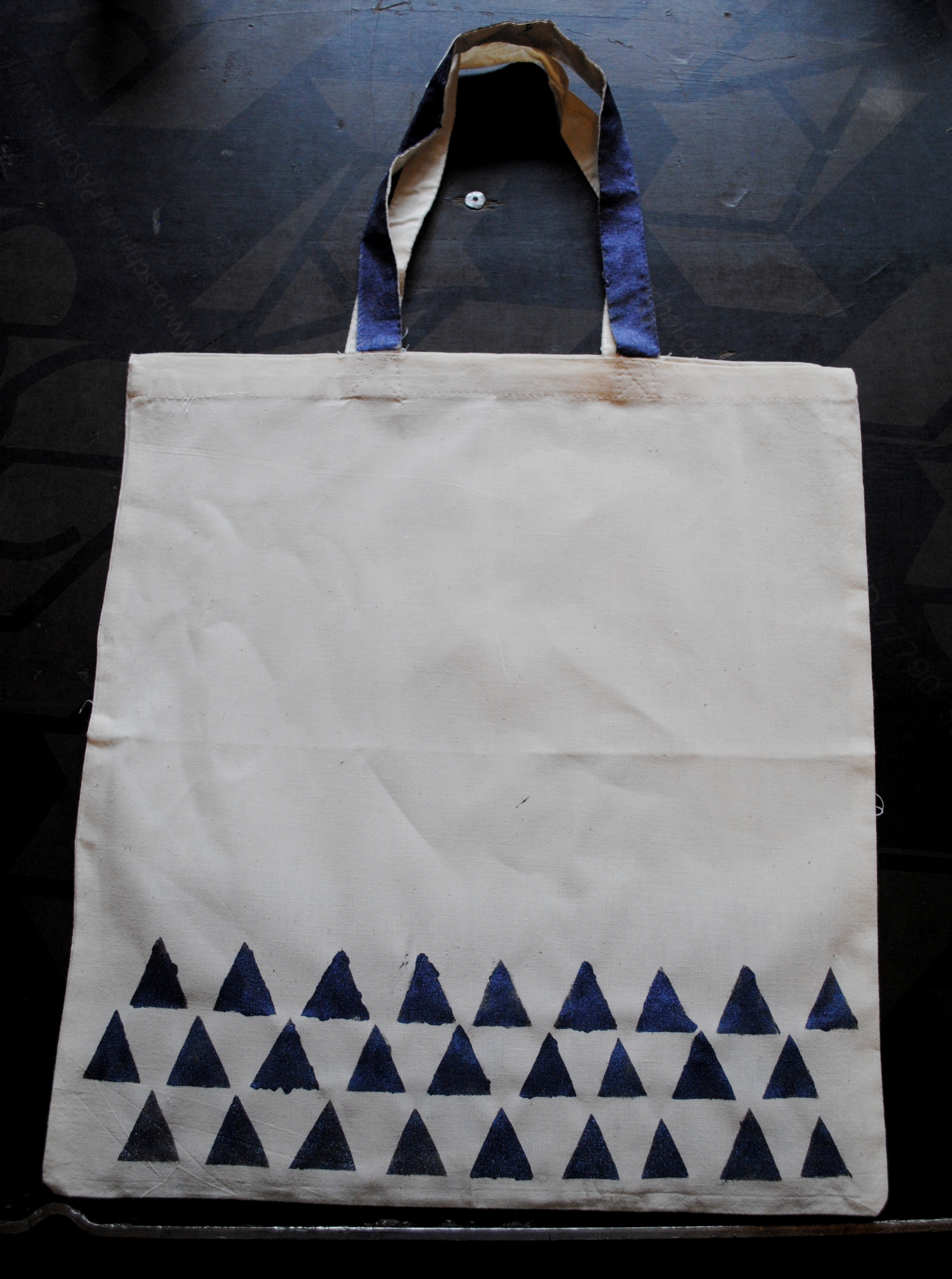 Placer le carton à l’intérieur de votre sac pour ne pas que la peinture traverse et s’imprime sur le verso de votre sac.