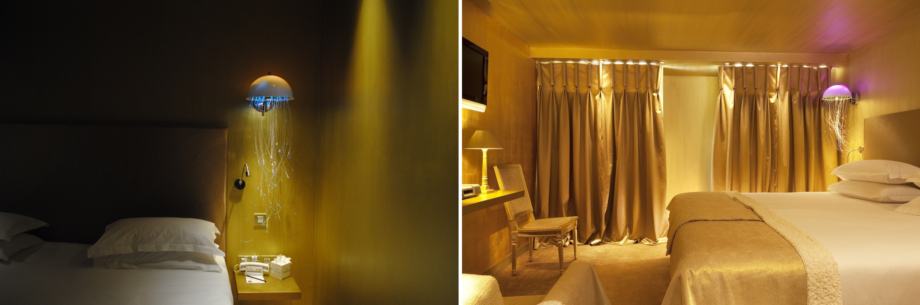 Envouthé Hotel Original - Chambre aux merveillesDans la plupart des chambres ainsi que dans toutes les parties communes de l’hôtel, nous retrouvons la magnifique Medusa de Stella Cadente et ses couleurs changeantes. Une lampe des plus design déclinée sous toutes ses formes.