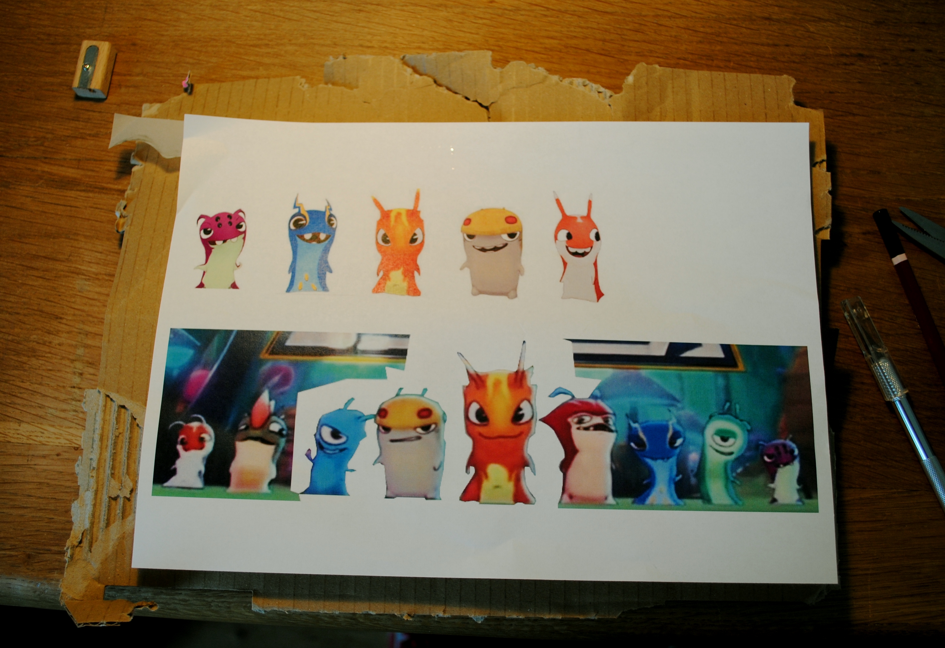 Armez-vous de votre cutter de précision et découpez l’intérieur de vos monstres. On est patient, on y va doucement pour que les découpes soient bien faites.