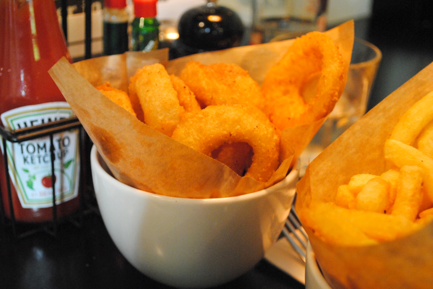 Côté assiette… Fort de son succès, le restaurant était déjà bien rempli lorsque nous sommes arrivés sur place, en général c’est plutôt bon signe. On nous a alors gentiment proposé de nous attabler au bar et nos deux estomacs vides ont accepté. La carte est plutôt complète, différents types de burger, les classiques, les gourmets et les burgers du moment. Pour nous faire patienter le temps que les plats arrivent, il y a la Ellis Gazette, remplie d’histoires de burger, de quoi nous faire saliver… Lorsque les assiettes arrivent, on a la joie de pouvoir trouver des frites maison, des onion rings maison comme nous n’en avions jamais mangé (des vrais en fait, pas des industriels…) et un burger préparé avec de bons produits. En bouche c’est un délice… on recommande grandement !