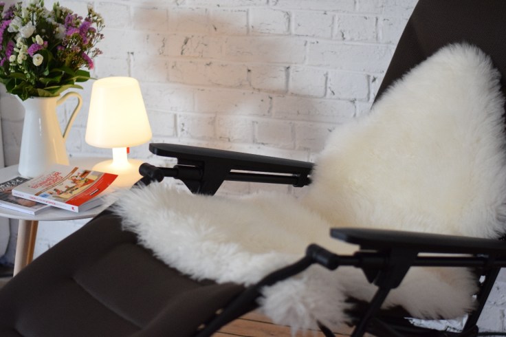 Le gros avantage de ce fauteuil c’est qu’il se prête aussi bien à l’extérieur qu’à l’intérieur. Même si la plupart me diront qu’il fait quand même plus extérieur. Certes, je ne les contredirais pas, MAIS agrémenté d’un plaid ou d’une peau de bête graou graou, je vous assure qu’il a vraiment sa place en intérieur.