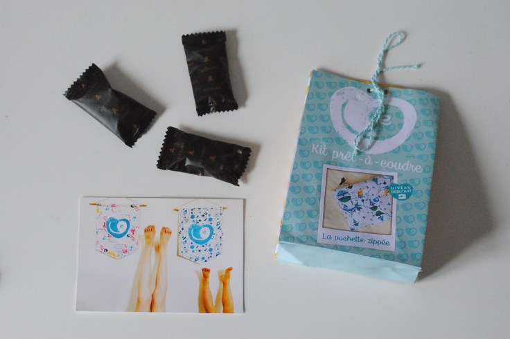 Le plus de cette marque ? Elle propose des kits couture pour réaliser plein de belles pépites : chaussons, pochette, trousse, sac, coussin… Et elle a même pensé aux novices ! C’est pas hyper sympa ça ? Pour vous donner un petit, je me suis prêtée au jeu en réalisant une pochette niveau