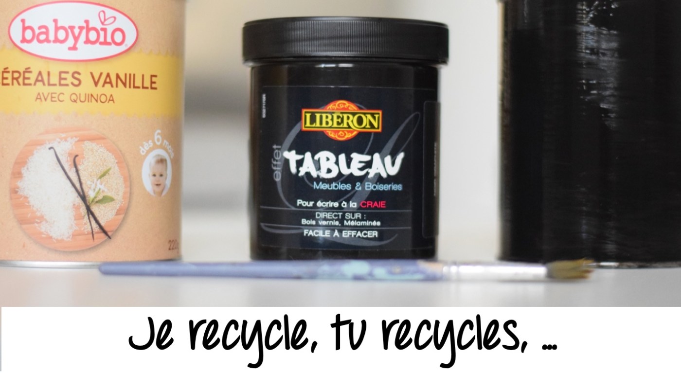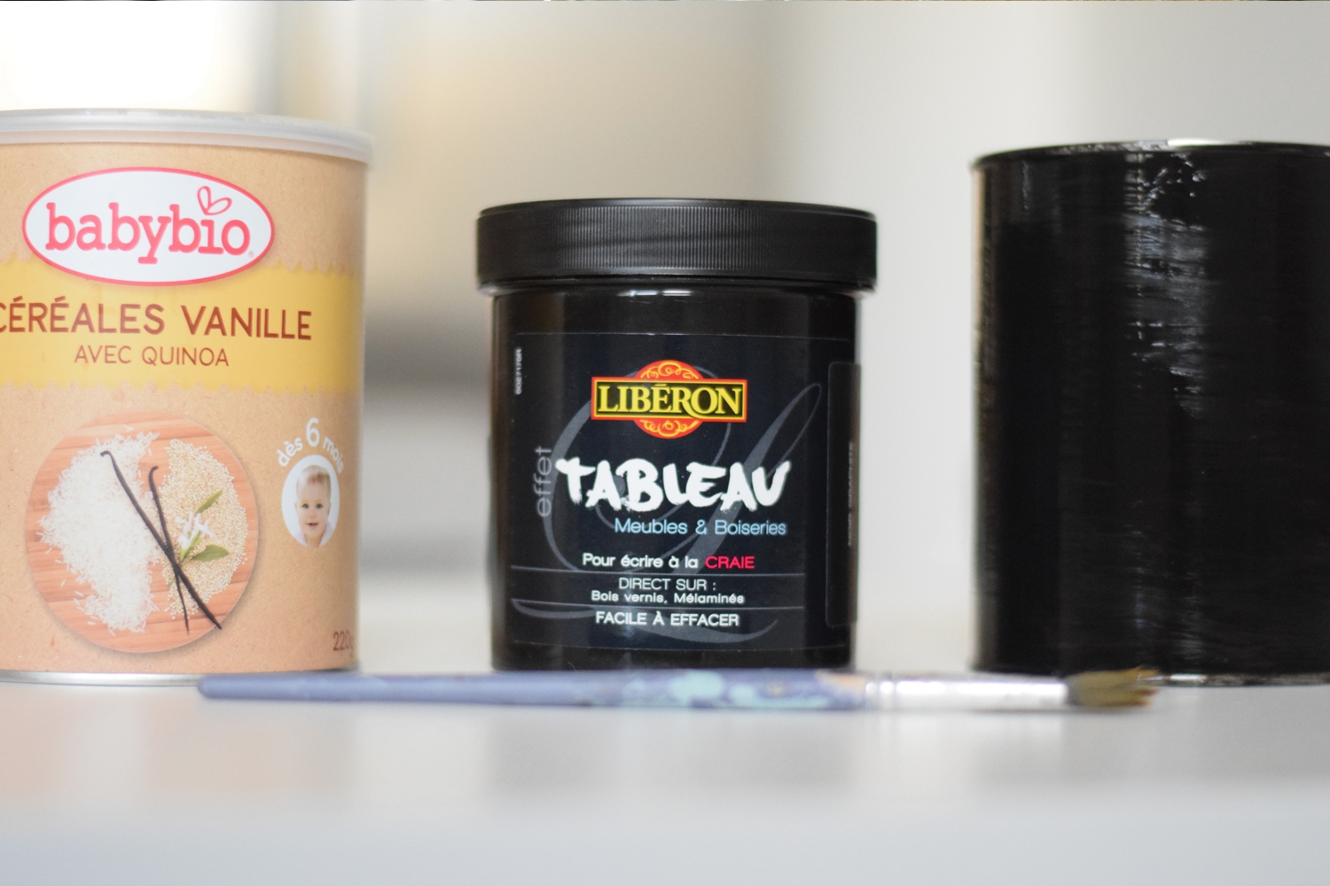Cela fait quelques mois années qu’un pot de peinture « tableau noir » Liberon attend sagement dans le fond d’un placard que je lui fasse son sort. Et bien c’est chose faite ! Aujourd’hui je vous dis tout sur comment j’ai recyclé mes boites de lait infantile ou mes boîtes de céréales.