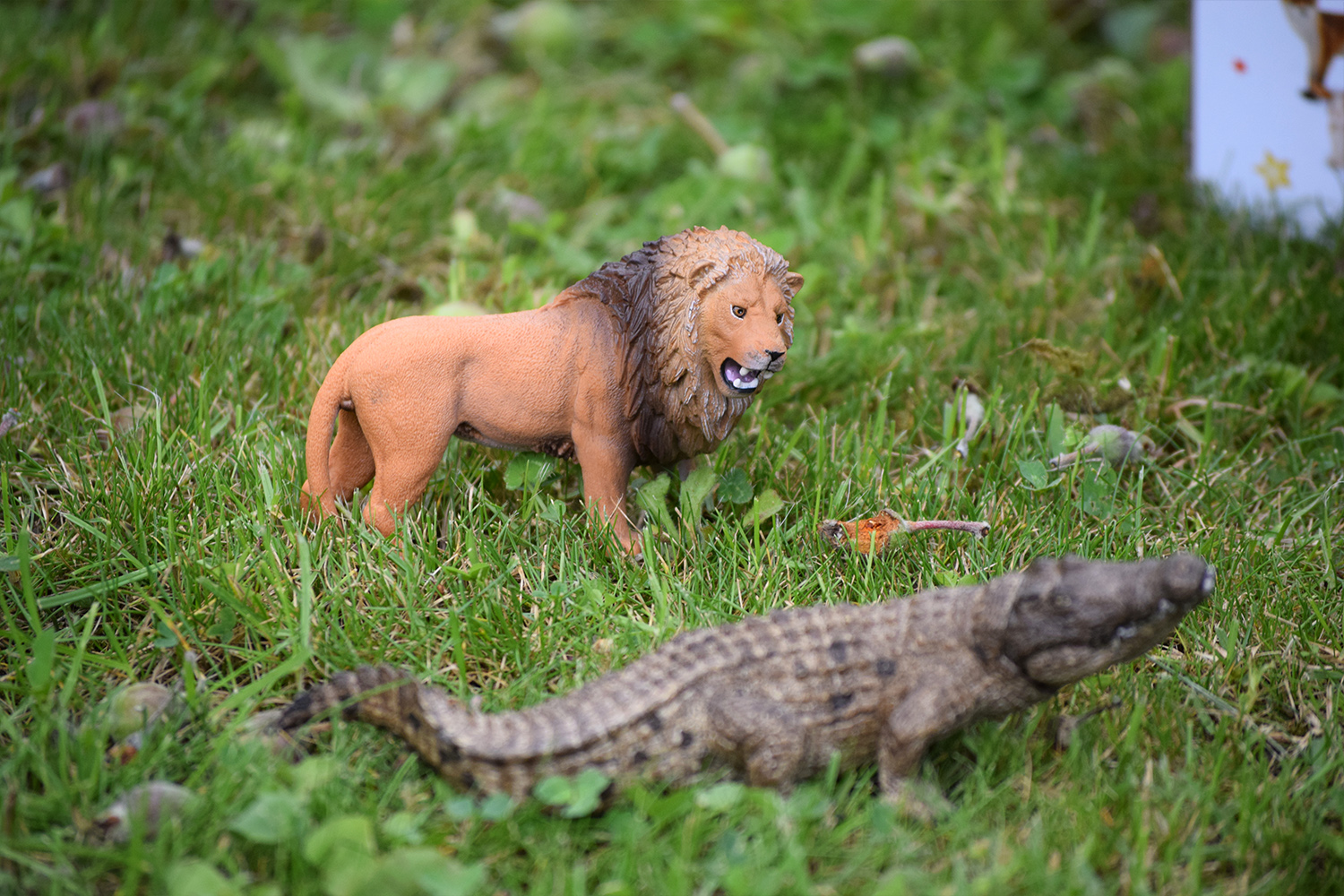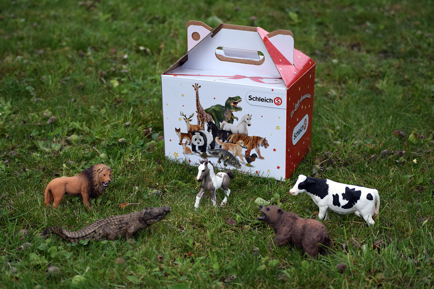 Pour les temps calmes, j’avais prévu un tapis de jeux avec des figurines animaux Schleich (bon plan : en ce moment pour l’achat de plusieurs figurines, une boîte anniversaire est offerte). Je ne m’étais d’ailleurs jamais vraiment penchée sur ces figurines, mais elles ont eu un succès fou et j’ai trouvé qu’elles étaient vraiment bien faites et très réalistes. Lola les adore !