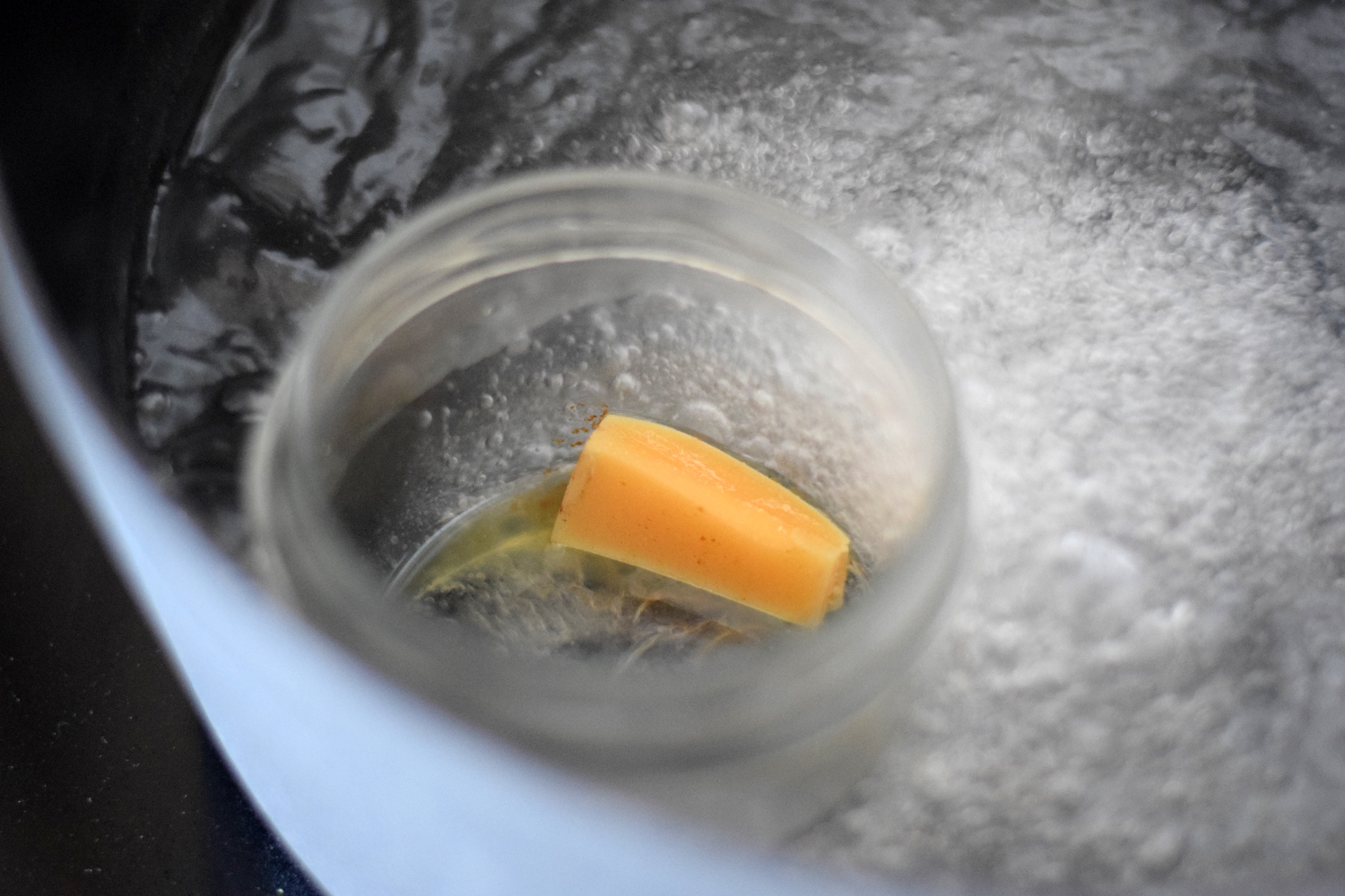 Etape 1 : Faire fondre la cire d’abeille au bain-marie.