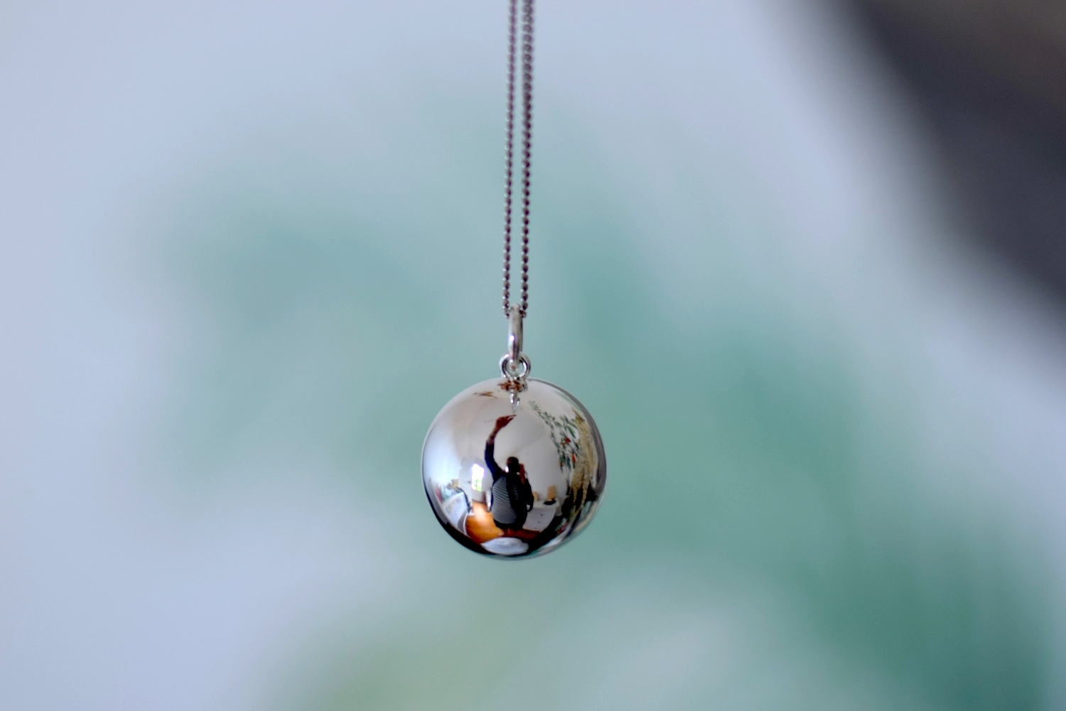 Pour ma première grossesse, je n’ai pas porté ce fameux bijou de maternité plus communément appelé bola de grossesse. Je ne sais plus trop si je connaissais déjà le concept ou non ; en tout cas, il n’avait pas encore frappé à ma porte. Pour ma seconde grossesse, c’est tardivement que je me suis dit « un bola ? pourquoi pas ! ». J’aime les longs colliers (je porte mon sautoir depuis des années). Alors j’ai sauté le pas. Ce collier portera l’histoire de ma seconde et à priori dernière grossesse. Il sera le symbole de nos « 9 mois » passés ensemble, même si techniquement je ne l’aurais pas porté 9 mois.