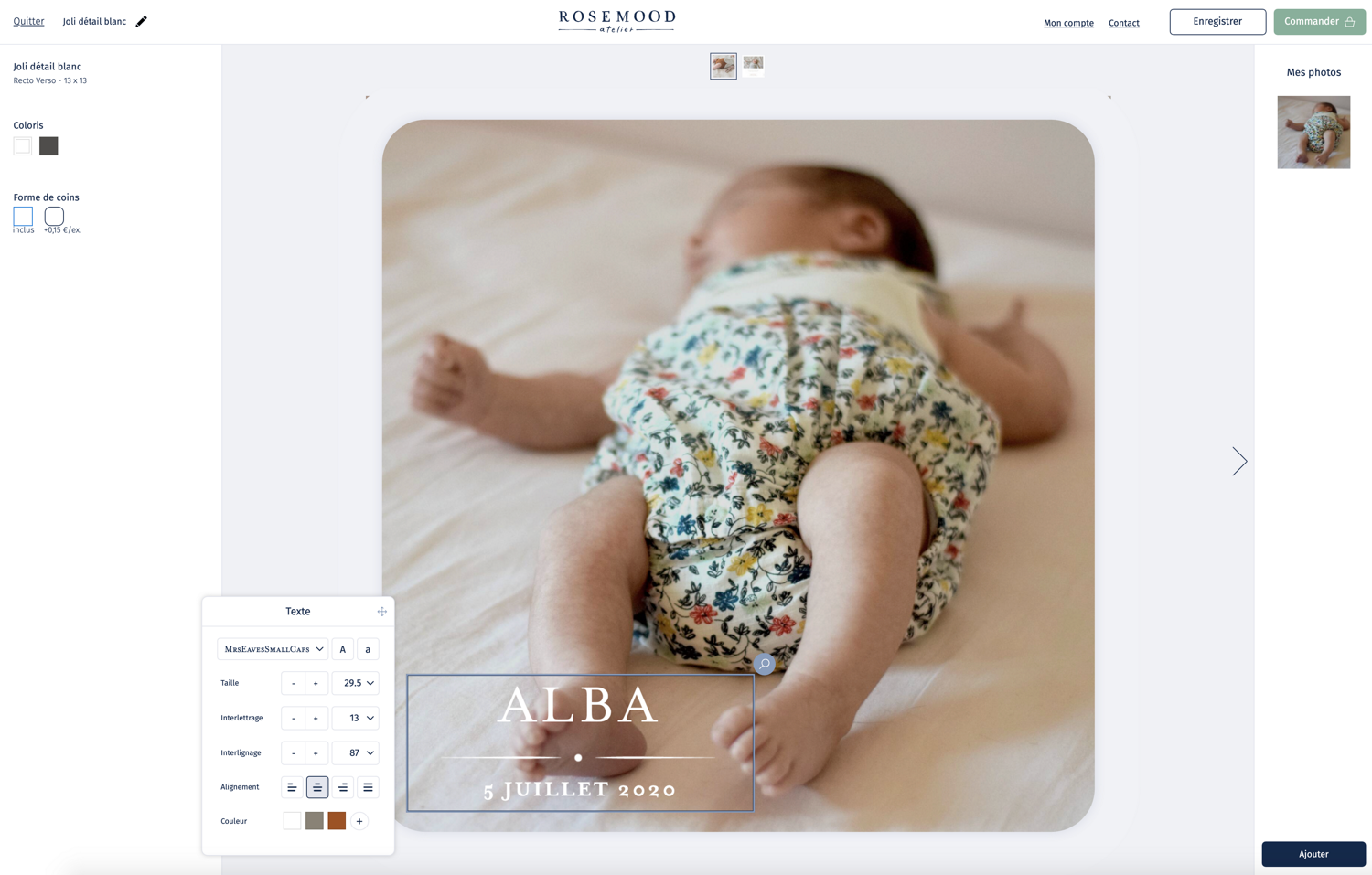 En plus d’avoir un choix de dingue dans les créations, la qualité est plus qu’au rendez-vous. Leur credo ? Ils aiment faire du bien avec du beau, et ça se ressent ! Après avoir choisi son faire-part parmi une multitude de modèles plus canons les uns que les autres, on passe à la personnalisation : photo, texte, typo, angles pointus ou arrondis, types de papier… Bref les possibilités sont infinies et la plateforme de design est vraiment intuitive. On importe nos photos, on les glisse dans les emplacements prévus et hop on voit aussitôt le rendu.