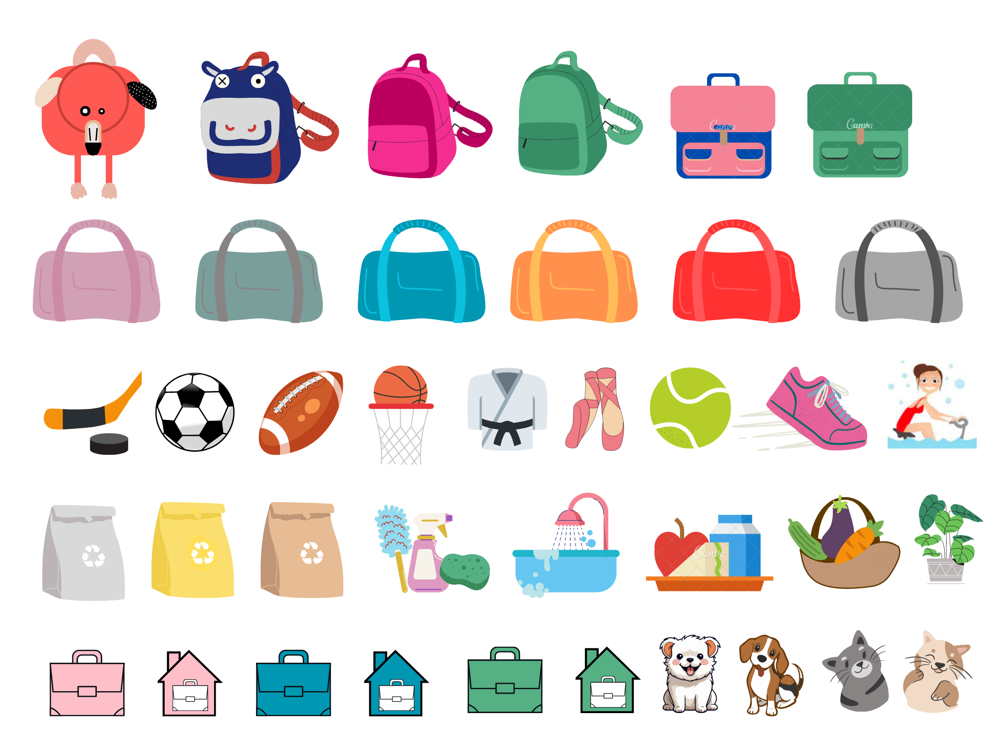 Je vous mets donc à disposition mon template de planning familial à personnaliser selon vos besoins, un planning vierge pour 4 personnes et une planches avec des picto d’activités. Vous en trouverez plein d’autres sur Canva !